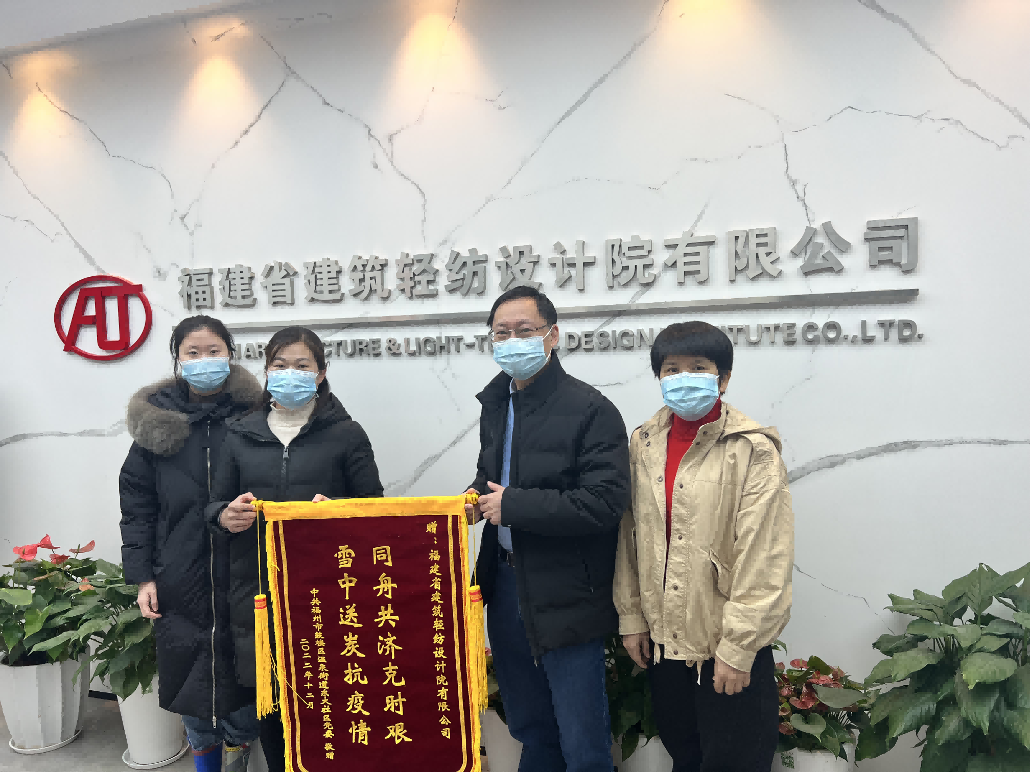 12月14日上午,福州市鼓樓區(qū)東大社區(qū)黨委把一面印有“同舟共濟(jì)克時艱 雪中送炭抗疫情”的錦旗送到福建省建筑輕紡設(shè)計院有限公司,感謝設(shè)計院志愿者在疫情防控工作中用責(zé)任和擔(dān)當(dāng)幫助社區(qū)居民筑起一道堅實的“防疫墻”。